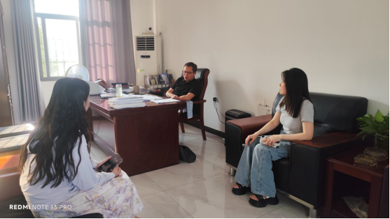 当天下午,团队指导老师及队长前往郎君镇政府。在与镇书记的交谈中,杨双辉书记展示出了对于暑期安心托管班的高度重视,并代表当地对服务队的到来表示热烈欢迎。他坦言,志愿者们的到来为宁静的乡村注入了青春活力,期待大家能用专业所长为当地带来新思想、新视角,让这段志愿服务成为双向成长的珍贵经历。随后,书记兴致勃勃地介绍了郎君镇特色农业,真诚邀请志愿者们参与特色农业的推广宣传工作,镇书记在谈话中提到,“希望你们用年轻人的创意为特色农产品的宣传推广出谋划策,让更多人看见郎君镇的生态之美与产业活力。”书记的话语中充满期待。当谈及当地发展时,书记特别提到,如今郎君镇政府的干事队伍以青年为主力,他殷切希望志愿者们在服务期间能与镇里的年轻干事们多交流、多反馈,通过思想碰撞凝聚发展共识,携手为郎君镇的复兴与繁荣添砖加瓦。