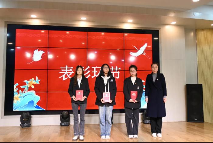 首先是对本年度优秀党务工作者罗欣怡等同学进行表彰,董燕老师为其颁奖。表彰党务小组工作人员是对他们一直以来在活动背后默默付出的作为和甘于奉献的精神予以肯定,并希望他们能一直保持着工作热情和初心,为公司党支部献出自己的一份力量。接下来,由杜永成老师、程茜老师和杨洁老师分别为获奖同学颁奖。表彰激发了老员工的创新意识和学习热情,鼓励了老员工在学习和生活中积极思考、勇于创新,不断追求更高的目标和成就。