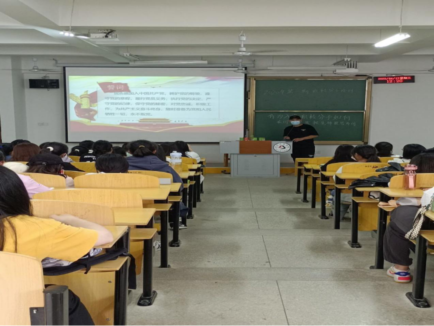 党课培训分为入场签到,课上听讲做笔记,课后复习,党课考核四个阶段。党课围绕(1)入党动机(2)中国共产党性质(3)党史党章(4)十九届六中全会精神(5)社会主义核心价值观(6)先锋模范带头作用(7)总体国家安全观(8)学习心得分享展示活动。老师们认真教学,同学们聚精会神地听讲。期间,伟德国际VICTOR1946的党务小组成员维持会场秩序,进行拍照记录总结,整理积极分子资料,收取作业等。同时将实时线上视频发送给线上党课培训的同学。本次党课培训让同学们对入党有了更深刻的认识,伟人精神如同一座闪亮的航标,指引着同学前进。“浩渺乾坤日月梭,人间盛世乐祥和。”在这绯红的黎明下,同学们正怀揣着簇新的理想,朝着伟大的建党精神迈进。