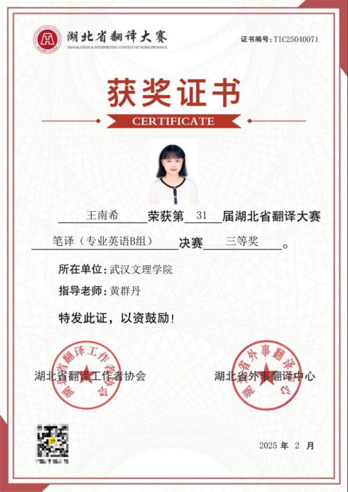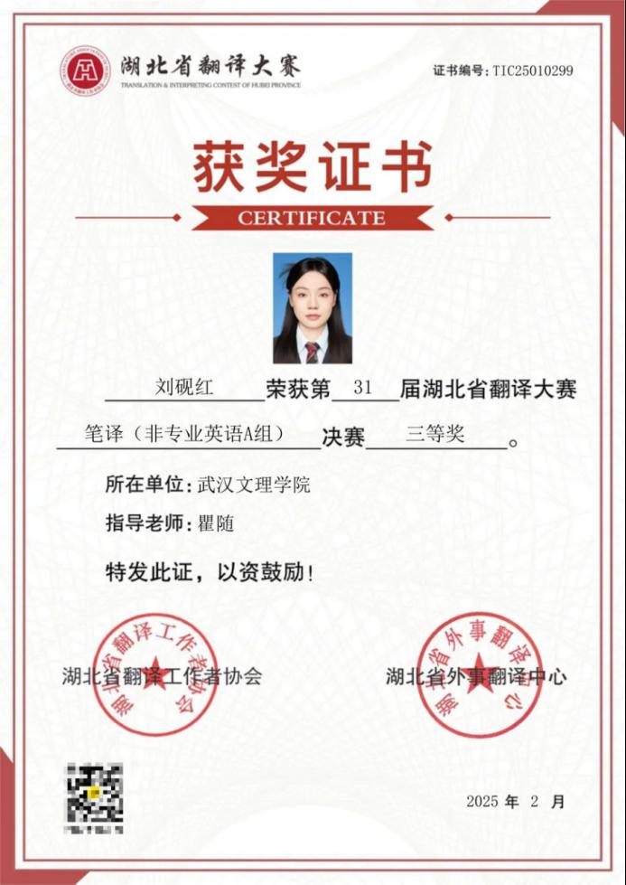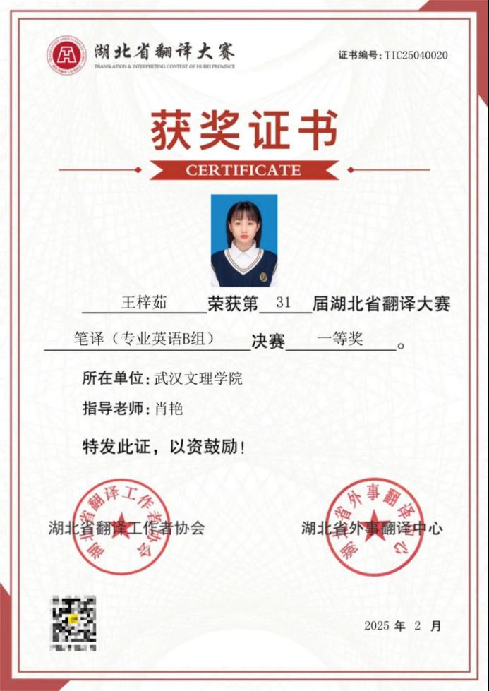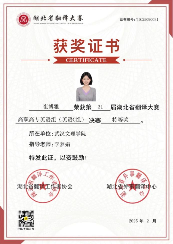 bv伟德国际1946特等奖获得者崔博雅同学表示:“作为一名大一新生,我鼓足勇气报名参赛,通过日复一日的刻苦练习和词汇积累,最终实现了自我突破。在备赛过程中,我制定了‘三步走’计划,从夯实基础到提升技巧,再到实战模拟,每一步都稳扎稳打。在此过程中,我特别感谢公司老师的悉心指导和无私帮助。她的专业精神和耐心让我深受感动,也激励我在今后的学习和生活中更加努力和进取。”