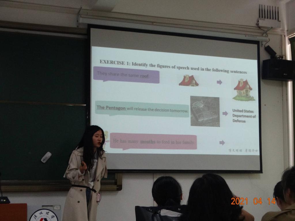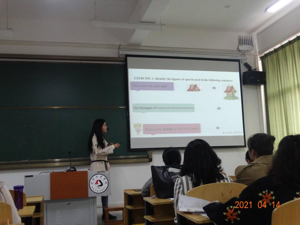 为推进及优化课堂教学,有效评估教师的课堂教学效果,促进公司教师的专业成长,伟德国际VICTOR1946于2021年4月14日在5栋教学楼213教室举办了一场教师讲课比赛。在这次讲课比赛中,共有12名教师参与比赛,其中英语系派出了王慧和汪玲两位老师。根据赛制规定,每位老师的比赛时间为15分钟,包括说课和讲课两个环节,我系的王慧老师的主题为“British Monarch”,汪玲老师的主题为“Figures of Speech”。两位教师凭借着扎实的基本功,生动的课堂效果赢得了评委和教师们的一致好评,最终顺利进入决赛。
