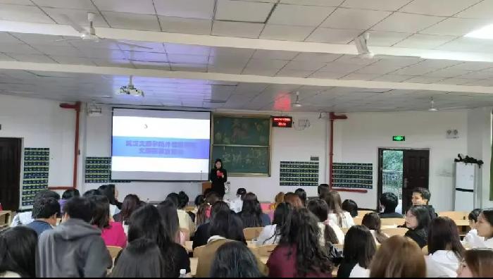 常佳睿,20级翻译一班班长,荣获大学英语四六级、专四合格、CATTI三笔证书,在校学习成绩均分88+,成绩优异,同时也获得外研社各项比赛、湖北省翻译大赛等比赛奖项。她的备考经验丰富,有丰富的学习知识能力。在本次宣讲会上,向同学们展现了自己四年的学习经历、学习方法及考研经验。