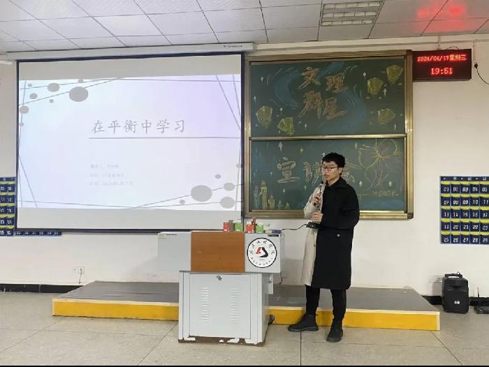 刘光明,21级翻译班,在大学期间,担任过公司、社团组织多种部门职务。同时,他也热衷于参与各类校园活动、比赛项目以及志愿服务等,为自己创造了一个丰富多彩的校园生活。除此之外,他合理的分配自己的学习,工作与生活的时间,在各种学科竞赛中也取得较为不错的成绩。擅长乐器的他,在校庆舞台表演的节目获得过“优秀表演奖”“最佳风采奖”等。喜欢文学的他还多次取得各类征文比赛的一等奖。本次宣讲会他给大家带来了平衡生活、学习和活动的相关经验。