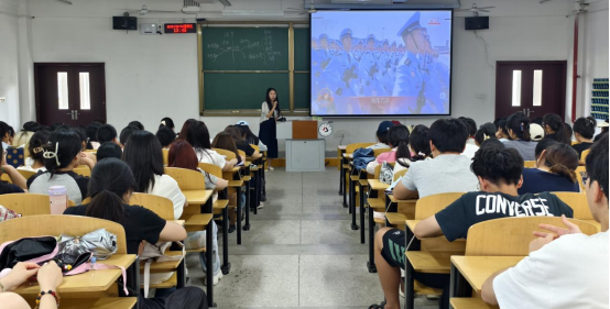 “从阅兵式上整齐的方阵、先进的装备,到电影里先辈们在苦难中坚守的身影,这些画面不仅是历史的见证,更是我们前行的力量。大家提出‘用外语讲好中国故事’‘传递历史真相’,这是外语人独特使命,语言是跨越隔阂的桥梁。希望你们把感悟化为行动:课上钻研专业知识,夯实本领;生活中铭记历史,不被仇恨裹挟,以理性包容传递和平。未来,无论走到哪,每一次精准翻译、真诚交流,都是在为国家形象代言,为世界和平助力。”辅导员老师提出寄语。