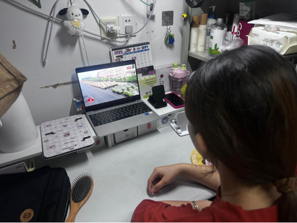 针对部分因实习、课程无法到场的员工,公司通过腾讯会议、微信公众号等平台开通“云端观礼”通道。员工们通过在寝室、图书馆等地同步收看。“当看到那象征着14年抗战历程的年号台和和平鸽时,我仿佛看到了那段艰苦卓绝的岁月。我们要铭记历史,珍惜现在的和平生活,努力学习,为实现中华民族伟大复兴而奋斗。”外语专业2024级徐雯竞同学写到。
