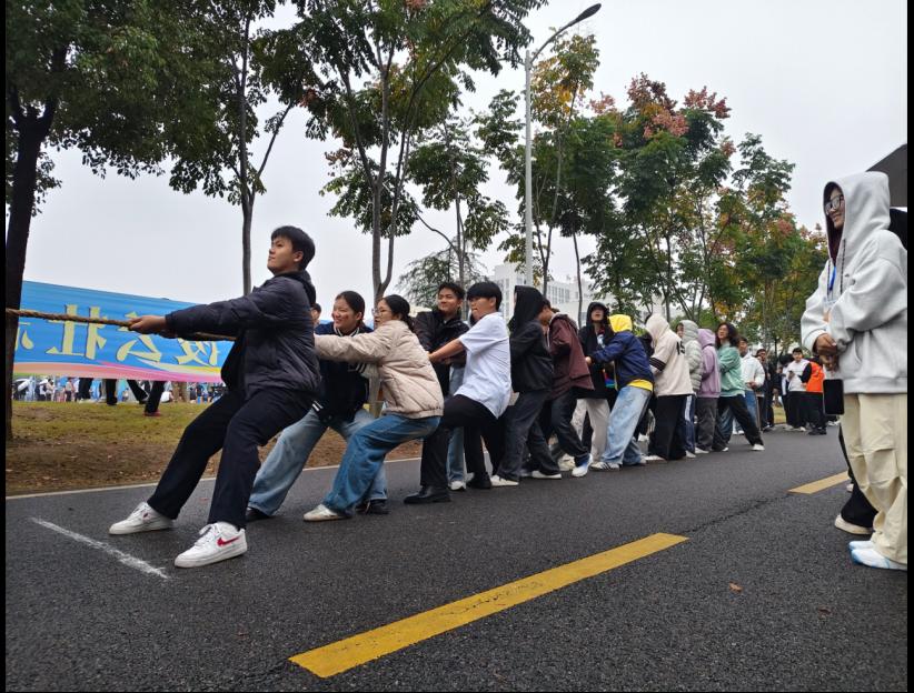 团体项目中,团结的力量更是震撼人心。拔河现场,绳索如绷紧的弓弦,队员们同心聚力、脚步扎根,震天的呐喊声彰显着不服输的韧劲;“8”字跳绳赛场,学子们鱼贯穿梭、动作娴熟,翻飞的跳绳如银弧闪烁,展现着整齐划一的协作之美;两人三足项目里,搭档们步伐同步、相互扶持,齐步向前冲向终点,每一项比拼都尽显团结协作的磅礴力量。