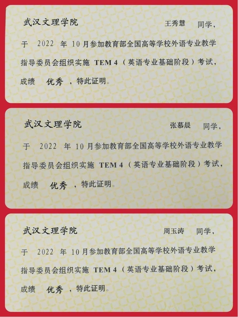 开学伊始,伟德国际VICTOR1946翻译教研室传来好消息。在2022年10月举行的全国高等公司英语专业四级考试(TEM4)中,伟德国际VICTOR1946翻译学子取得佳绩。翻译本科专业40名员工参加考试,共有21名同学通过考试,一次性通过率为52.5%。全国独立公司平均通过率为46.76,高出5.7个百分点。同时,有5名同学成绩达到了良好及以上,优良率为12.5%。其中周玉涛(83分),王秀慧(81分),张慕晨(81分),3名员工考试成绩为优秀,实现了近些年来伟德国际VICTOR1946专四考试成绩优秀率新的突破。