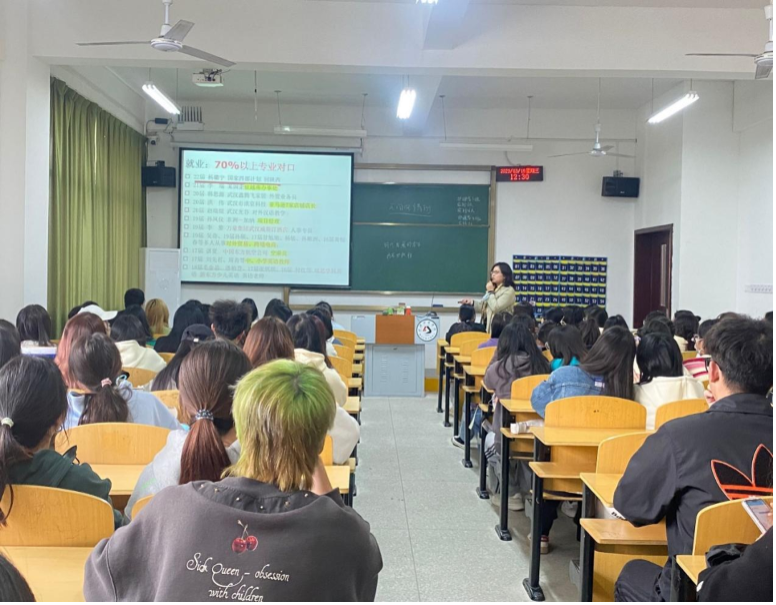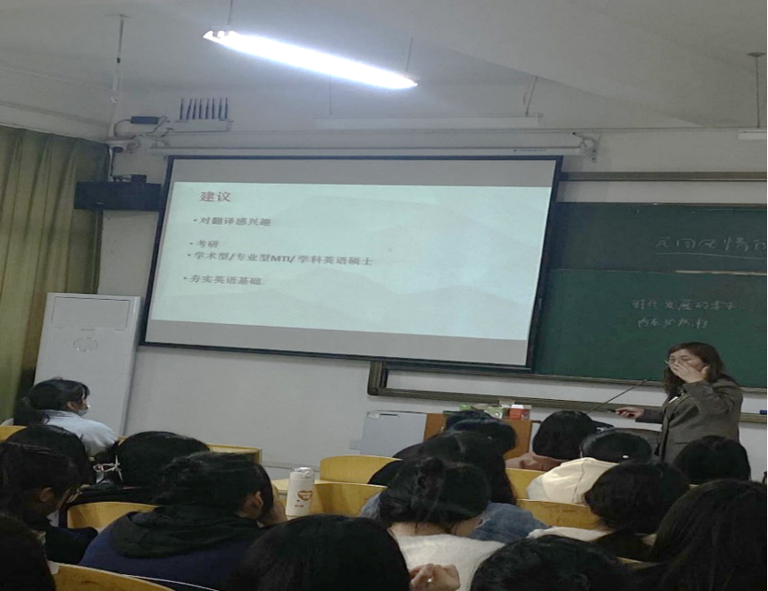 通过黄老师的讲解,同学们明白了翻译专业的新兴性,有很好的发展前景,感受到了学习翻译专业对英汉双语能力的提升和个人未来升学就业目标的明确意义,吸引了同学们积极选择翻译专业。