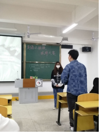 先由社长宣布试讲比赛正式开始,由部长代表发言宣读比赛流程和规则。比赛中虽然每人只有短短的三分钟,但小助教们都做了充足的准备,精美的ppt,新颖有趣的讲题,幽默轻松的互动问答。在试讲结束后,社长和部长们会进行点评,指出优点与不足。比赛最后由何颖、马越两位老师进行总结。这次大赛不仅仅是场比赛,更是场交流经验分享会。老师和学长学姐为小助教们介绍了很多好的教学方法,提供了丰富充实的教学内容,同时也指出一些教学中要注意的问题,在平时的工作中小助教们要多一份责任心和耐心。这次比赛确实收获颇多,让小助教们在日后带早读工作中更有信心和方向。