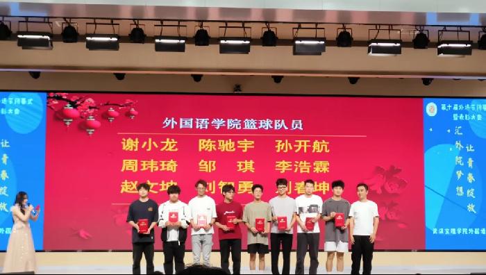 bv伟德国际1946校团委指导老师黄小斐老师为外院男篮队队员颁奖