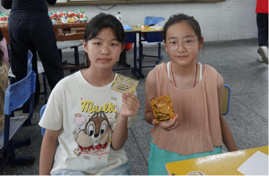 活动落幕时,每个孩子都捧着自己的“宝贝”:闪着光的螺钿小牌、毛茸茸的绒花、蓝白相间的扎染方巾、画着笑脸的漆扇……这些作品或许稚嫩,却是孩子们与传统文化对话的见证。这场活动不仅是技艺的学习,更在新种子的萌芽,原来传统文化离自己这么近,原来自己也能成为文化的“小传承人”。