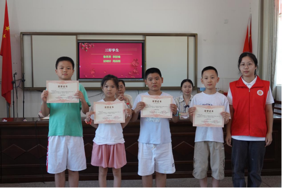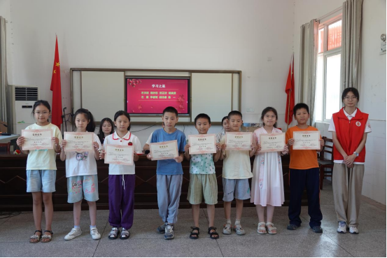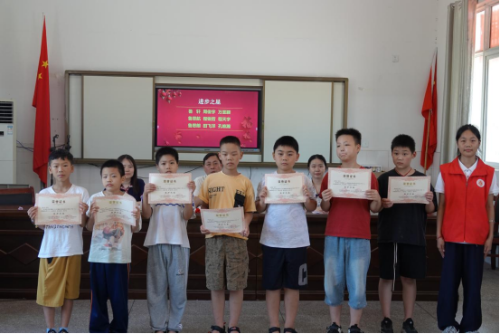 郎君镇中心小学兰还军董事长在致辞中高度评价了托管班的成效,对孩子们的求知热情和志愿者们的辛勤付出给予了特别表扬。他鼓励同学们继续保持良好习惯,以饱满的精神状态迎接新学期的挑战。在热烈的掌声中,活动进入颁奖环节,每一位同学都收获了属于自己的荣誉,这不仅是对他们暑期努力的肯定,更是对未来的期许。