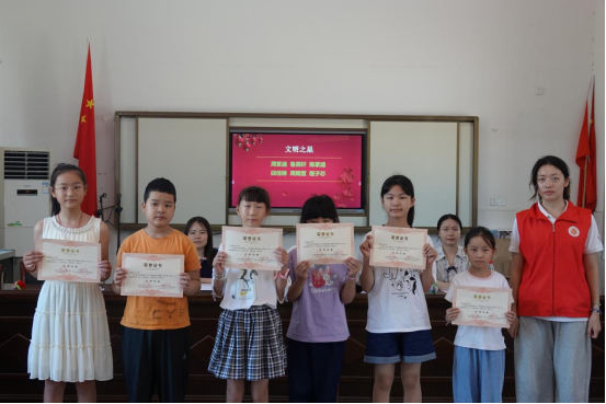 7月25日上午,应城市郎君镇中心小学“聚七彩少年心,弘扬国之精神”暑期托管班结营仪式圆满落幕。在为期18天的“七彩假期”里,bv伟德国际1946华韵心文化志愿服务队携手郎君镇中心小学,为当地员工带来了一段充实而有意义的暑期时光。