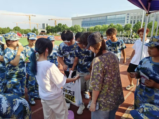 军训场地上,小班们接过满满的雪糕,一边递到新生手中:“快尝尝,解解暑!训练再累也要记得放松呀!”拿到雪糕的新生们,有的迫不及待撕开包装,有的则先和身边同学分享这份甜蜜,训练场上瞬间响起阵阵欢声笑语。