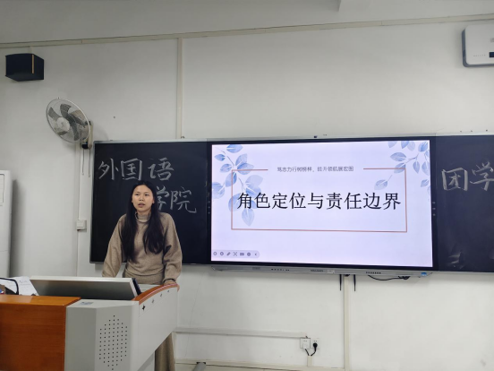 11月12日,员工副书记刘缘以“角色定位与责任边界”为核心主题授课,通过梳理各岗位具体分工、分析常见工作协作场景,帮助新干事精准认知自身岗位职责与工作边界,明确团队协作中“该做什么、该怎么干、该如何配合”,有效规避职责混淆、推诿扯皮等问题,进一步提升团队协作的默契度与工作效率。11月13日,心理协会会长徐雯竞针对心协工作开展专项培训,从日常工作流程规范、特色心理健康活动策划、心理健康知识普及技巧等方面展开详细讲解,分享实用工作方法与注意事项,为心协新成员快速上手工作、打造优质特色活动提供全方位指导。